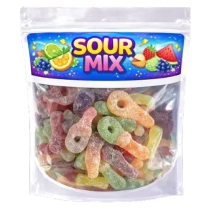 Bubble Gum Dummies zijn zachte snoepjes met een typische bubblegum smaak en een frisse, lichtzure coating die zorgt voor een lekkere zoet-zure combinatie. Door hun opvallende vorm en roze-blauwe kleuren zijn ze super populair bij liefhebbers van zuur snoep. Ze zijn lekker zacht en hebben precies die frisse bite die je verwacht. Ideaal om te combineren in je eigen snoepmix of gewoon om los van te genieten. Je kiest zelf hoeveel je wilt: vanaf 100 gram en daarna eenvoudig te verhogen per 50 gram tot maximaal 1500 gram. Zo heb je altijd precies genoeg, of je nu een kleine trek hebt of flink wilt inslaan. Na het kiezen van jouw favoriete snoepjes wordt alles samengevoegd tot één heerlijke mix. Afhankelijk van de hoeveelheid ontvang je jouw bestelling in een zak of emmer, netjes verpakt en klaar om van te genieten.