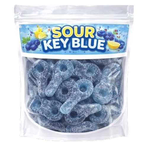 Sour Key Blue zijn zachte snoepjes met een frisse, lichtzure smaak en een fruitige smaakbeleving die zorgt voor een lekkere zoet-zure combinatie. Door hun unieke sleutelvorm en blauwe kleur met suikerlaagje zijn ze super populair bij liefhebbers van zuur snoep. Ze zijn lekker zacht en hebben precies die frisse bite die je verwacht. Ideaal om te combineren in je eigen snoepmix of gewoon om los van te genieten. Je kiest zelf hoeveel je wilt: vanaf 100 gram en daarna eenvoudig te verhogen per 50 gram tot maximaal 1500 gram. Zo heb je altijd precies genoeg, of je nu een kleine trek hebt of flink wilt inslaan. Na het kiezen van jouw favoriete snoepjes wordt alles samengevoegd tot één heerlijke mix. Afhankelijk van de hoeveelheid ontvang je jouw bestelling in een zak of emmer, netjes verpakt en klaar om van te genieten.